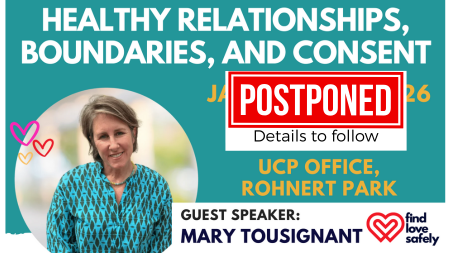 Mary Tousignant, the Find Love Safely California matchmaker, will facilitate an interactive relationship workshop where students will learn to identify healthy and unhealthy relationships, understand consent, practice setting boundaries, and feel confident saying "no" both verbally and through their body language. Through this workshop, students will experience intentional moments of exploration and practice in a safe and supportive environment.